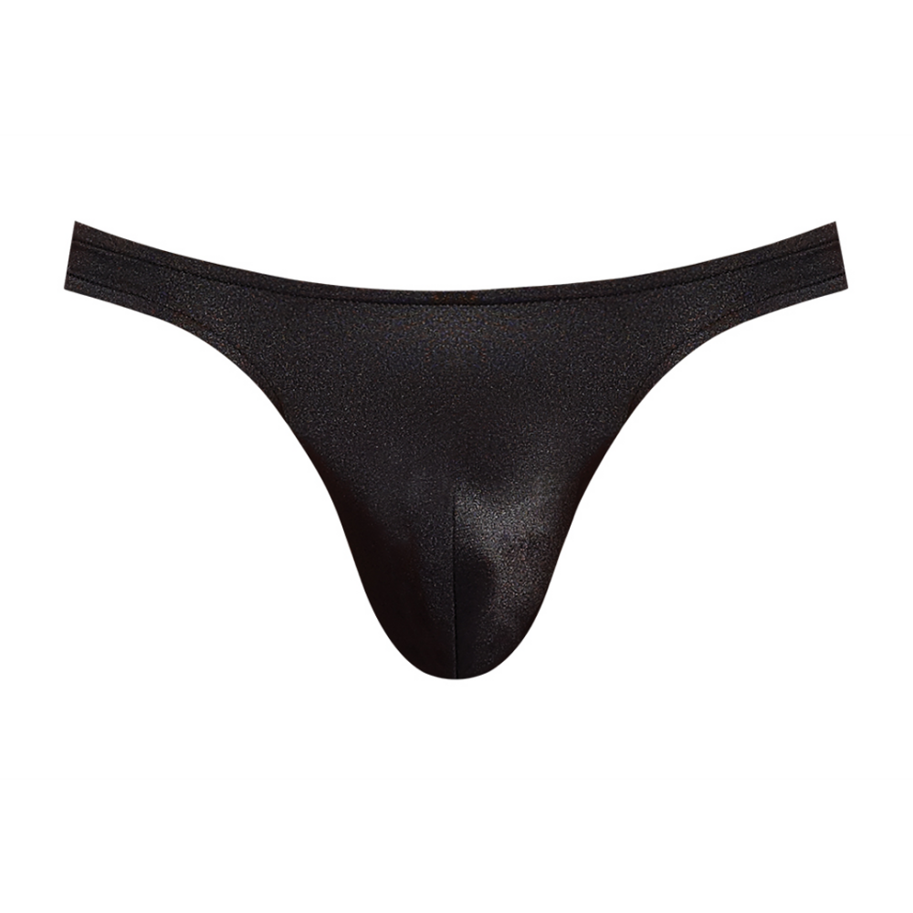 Van de Satin Spandex-collectie van Male Power, deze stijl omvat: Een satijnen bong thong met een comfortabele pasvorm, een klassieke thong achterkant en ton-sur-ton pluche elastische afwerking.