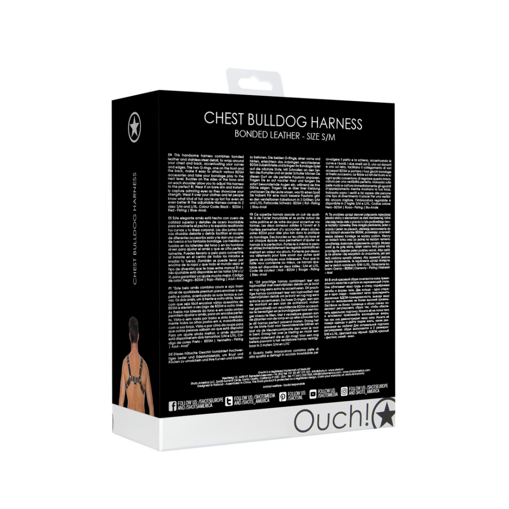 Dit prachtige harnas combineert leer van topkwaliteit met roestvrijstalen details om je borst en rug nog eens extra te accentueren. Dit prachtige harnas combineert leer van topkwaliteit met roestvrijstalen details om je borst en rug nog eens extra te accentueren. De twee O ringen, een aan de voorkant en een aan de achterkant, maken het gemakkelijk om verschillende BDSM accessoires te bevestigen en je bondagespel naar een hoger niveau te tillen. Met 4 verstelbare gespen aan de zijkanten van de romp en op elke schouder kun je dit harnas perfect passend maken. Draag het op de blote huid voor bewonderende blikken en laat via de kleurencombinatie zien waar je voor in bent. Draag het over je kleding en maak een fashion statement die er zijn mag! Voor een nog betere pasvorm is het verstelbare harnas verkrijgbaar in 2 maten: S/M en L/XL
