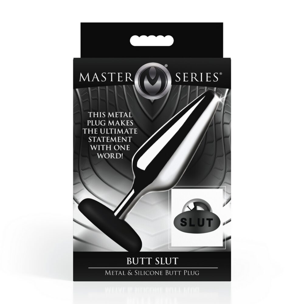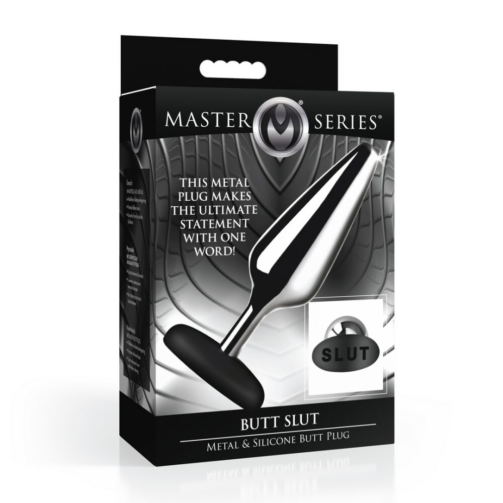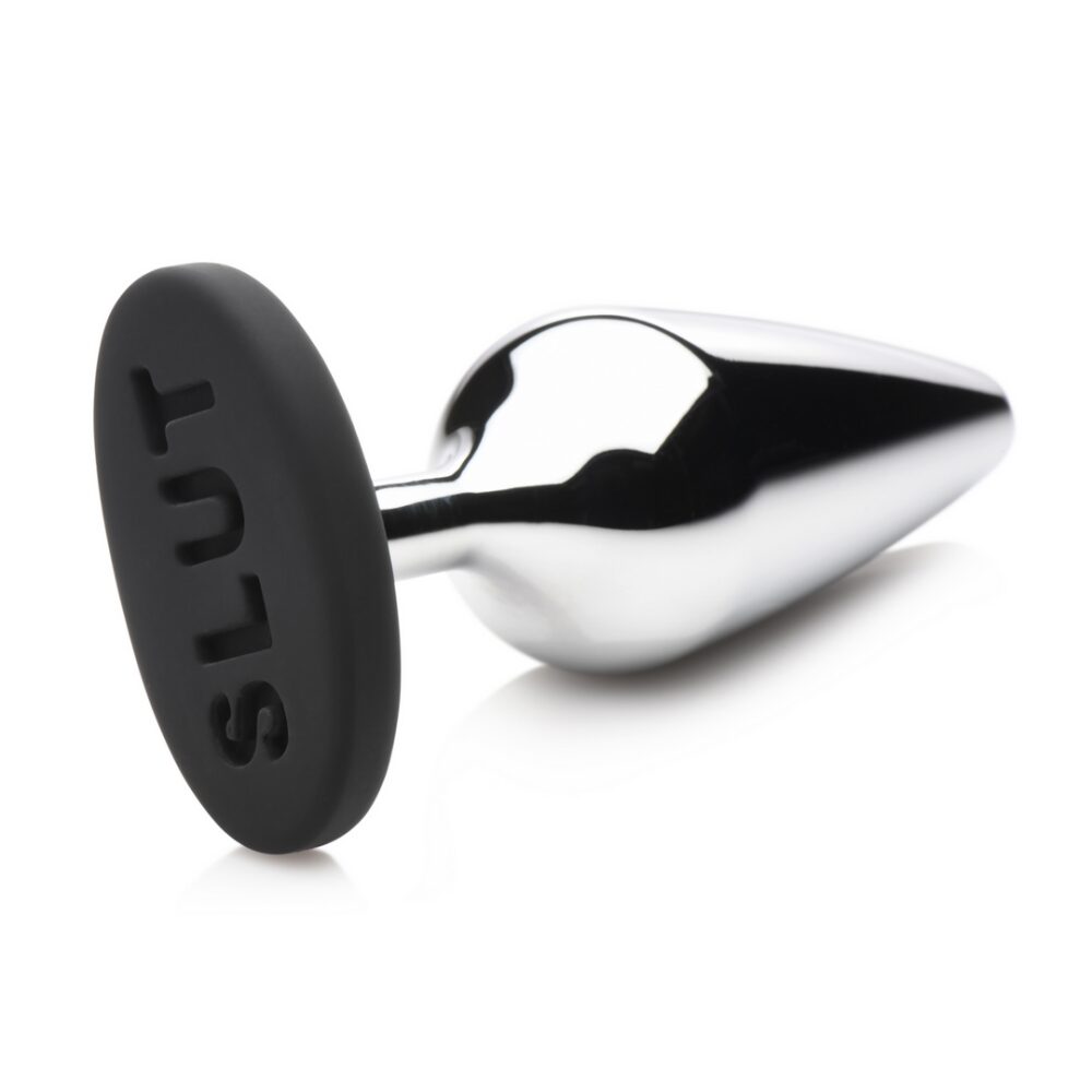 Spice things up with this metal butt plug! On the silicone base is the word SLUT so your partner can see exactly what kind of naughty lover you are! The aluminum alloy plug is a lightweight metal that can be used for temperature play. Heat it up or cool it down by running it under hot or cold water. The tapered tip makes insertion easy and the metal plug is non-porous, glides in easily, and nickel-free. The premium, phthalate-free silicone base is wide and flanged so it is safe for anal, but thin enough so it can fit between your butt cheeks! Use with water-based lubricants for best results. After use, wash with warm water and mild soap and then rinse it and spray it with a toy cleaner. Let air-dry. Surprise your partner by slipping this inside before foreplay! Take some time before the date and warm yourself up. Use a toy or vibrator, lube, and some naughty thoughts to get yourself going. Slowly slide it in. If it feels too cold, run it under warm water first, then apply lube. Once it’s inside, head out on your date! As your partner goes to take your clothing off, they can see the word nestled between your cheeks! After they’ve given you some foreplay and attention, let them take it out and put something else of theirs inside your backdoor! Measurements: Overall length: 5.1 inches. Insertable length: 4.7 inches. Widest insertable diameter: 1.5 inches. Note: Use only with water-based lubricants for best results.