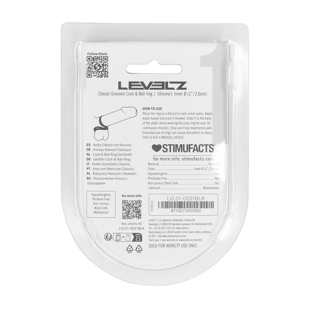 Lock in lasting pleasure with this dual-action cock ball ring from the LEVELZ collection. Designed to encircle both shaft and scrotum, it enhances firmness while delivering a satisfying stretch and pressure. Crafted from smooth, body-safe silicone and packaged in a sleek clamshell, this non-vibrating essential is built for comfort, control, and a more intense experience.