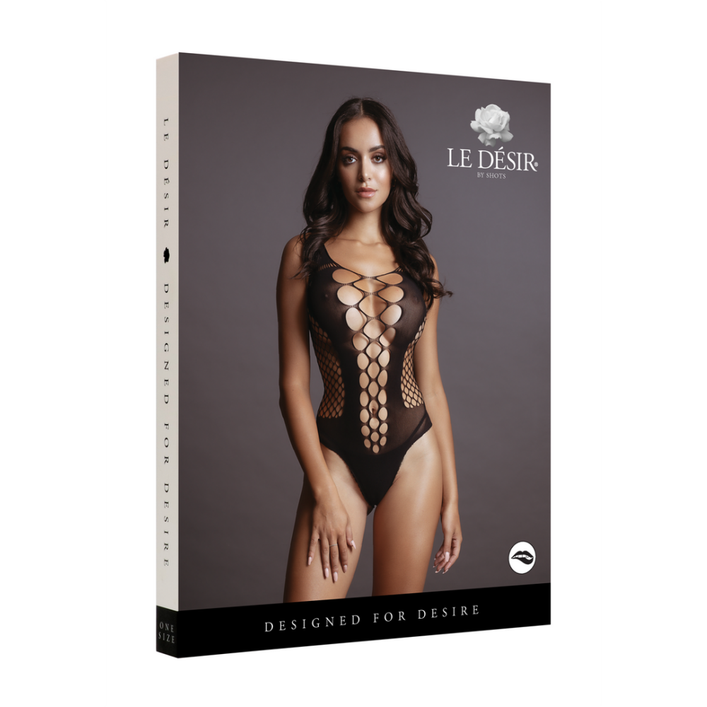 Teddy met V-hals met een sexy combinatie van open visnet en opaque stroken om de lichaamsvorm te accentueren. De zachte, superelastische stof is geschikt voor maten S tot XL.