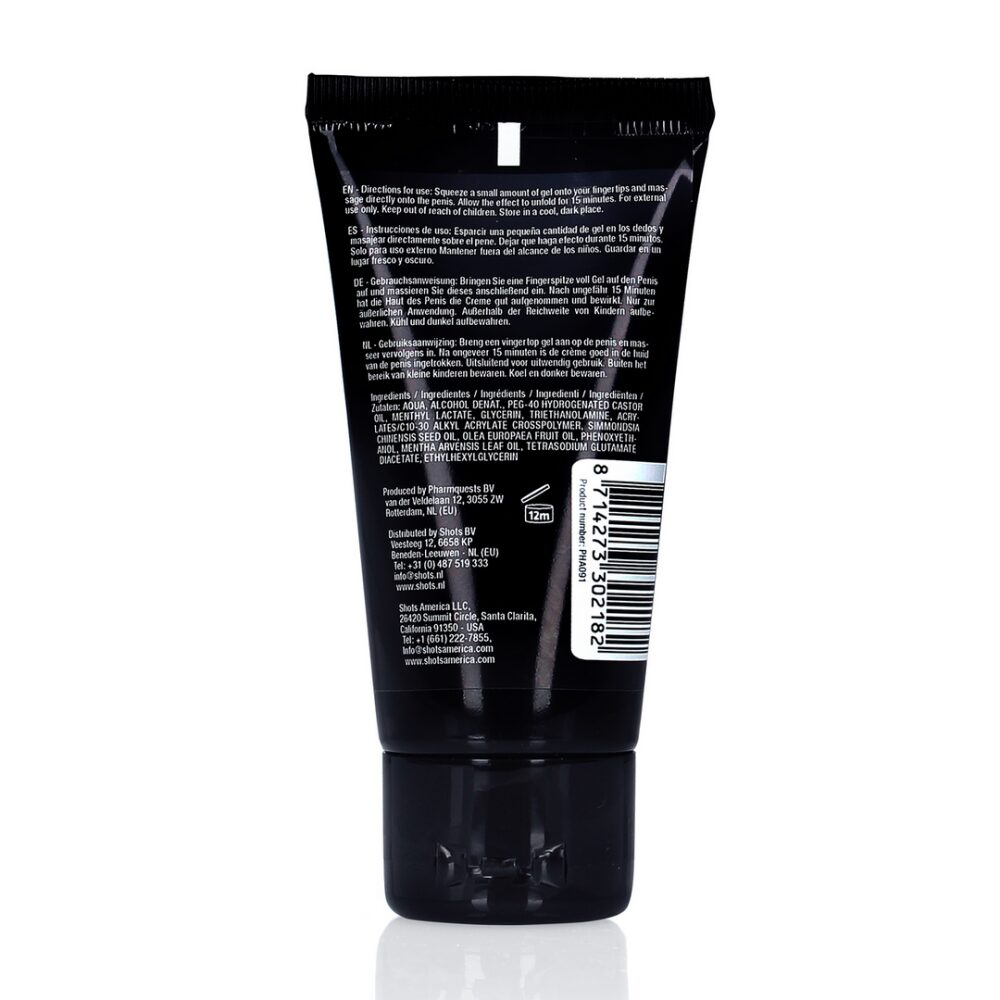 Gebruiksaanwijzing: Breng een vingertop gel aan op de penis en masseer vervolgens in. Na ongeveer 15 minuten is de crème goed in de huid van de penis ingetrokken. Uitsluitend voor uitwendig gebruik. Buiten het bereik van kleine kinderen bewaren. Koel en donker bewaren.