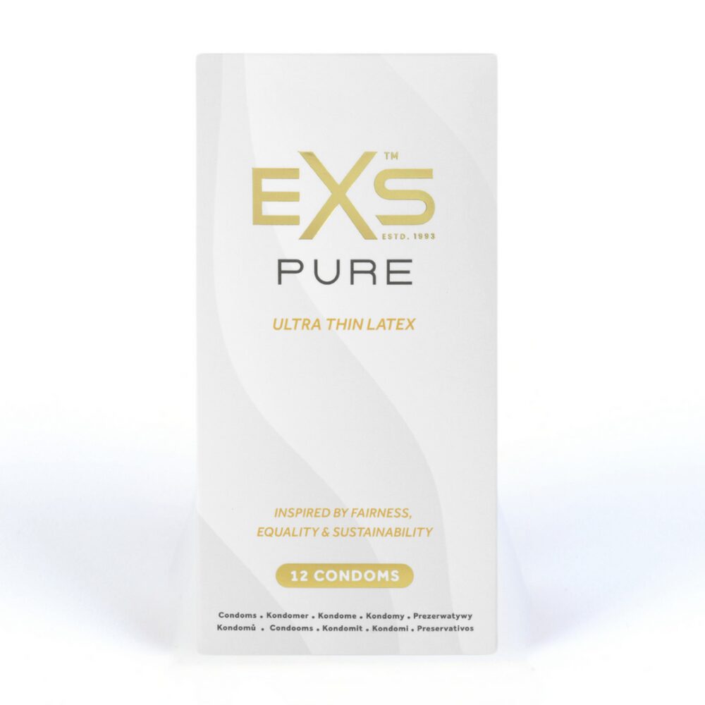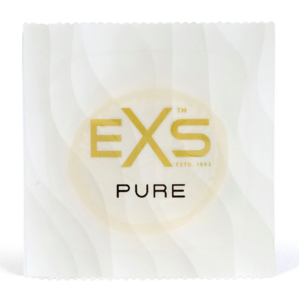 Bevat 12 premium, ultra-dunne, latex EXS Pure Condoms. Slechts 0,045 mm dik maar ongelooflijk sterk, dit is de volgende generatie duurzame en milieuvriendelijke latex condoom die maximale intimiteit en ultieme veiligheid biedt. EXS Pure condooms hebben een nominale breedte van 53 mm.