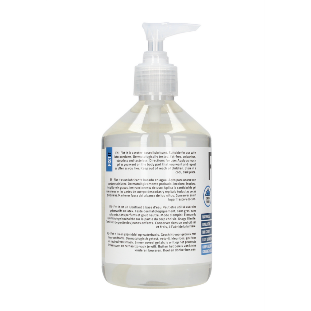 Fist It Professional is een glijmiddel op waterbasis. Geschikt voor gebruik met latex-condooms. Dermatologisch getest, vetvrij, kleurloos, geurloos en neutraal van smaak.Smeer zoveel gel als je wilt op het gewenste lichaamsdeel en herhaal zo vaak je wilt. Buiten het bereik van kleine kinderen bewaren. Koel en donker bewaren.