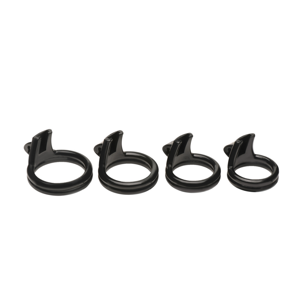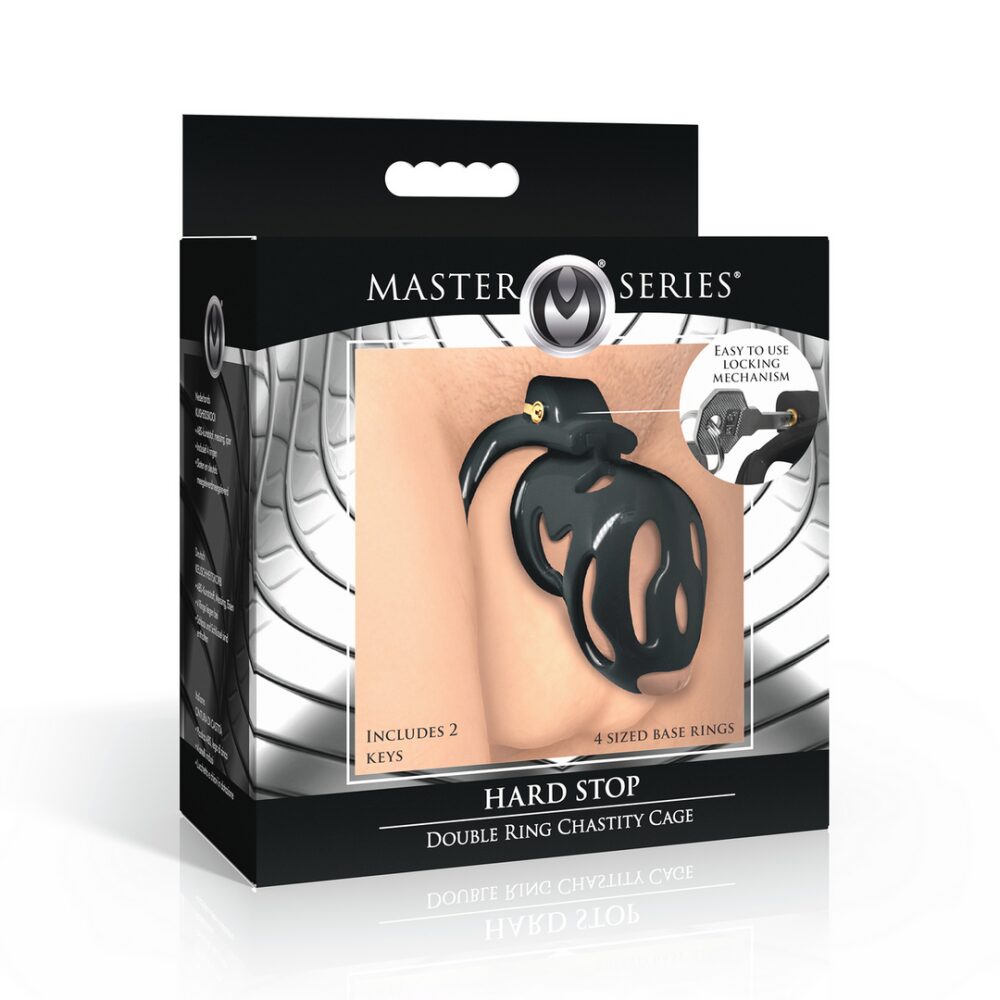 Step into the realm of pleasurable restraint with the Hard Stop Double Ring Chastity Cage. Made from sturdy black plastic, this starter cage is ideal for newcomers. It boasts an intuitive locking mechanism with two keys for peace of mind. With four adjustable rings, finding your ideal size is easy. The design includes several vents for maximum airflow and comfort during extended wear, along with a hole at the tip for effortless urination. Experience long-term confinement with a balance of security and ease. Your Keyholder turns the key in the lock and then places the key around their neck. As they gaze down at you, you suddenly feel an intense urge to please them. They have your freedom in the form of a key. Will they release you? What will it take? And even as you crave release, you know you crave submission even more. Measurements: Cage is approx. 2.1 inches Length x 1.7 inches Width. Ring inner diameters: 1.6 inches, 1.7 inches, 1.9 inches, 2 inches.