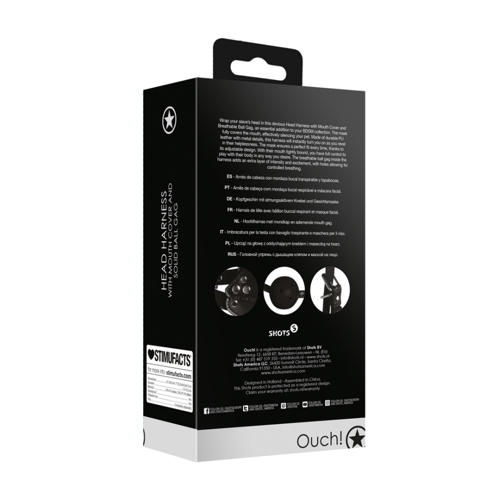 Hoofdharnas met mondkap en ademende mouth gag.