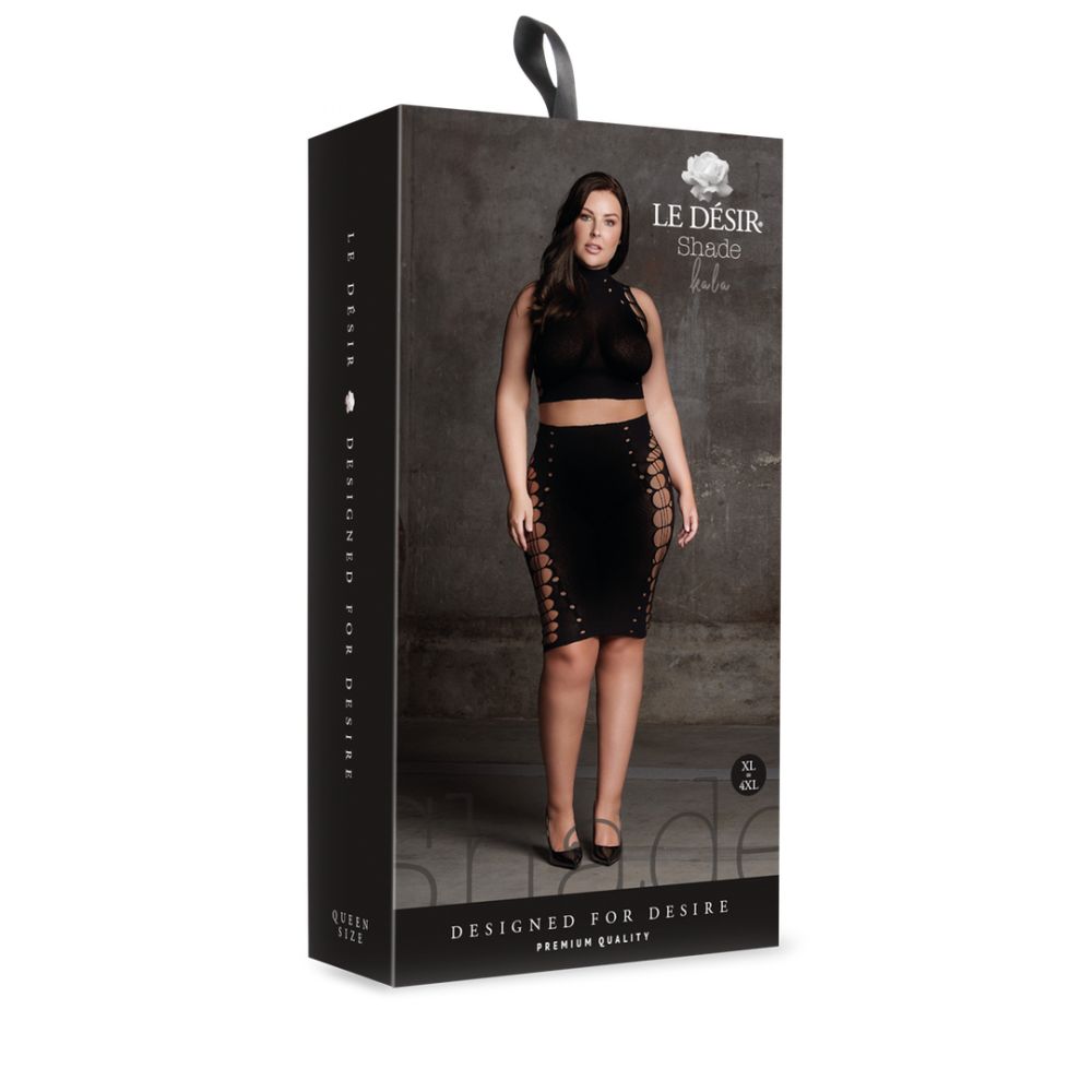 Classiness with some sharp edges, that is the definition of this Kala two-piece. This crop-top and skirt looks rough and stylish from the front, but is tastefully sexy from the side. The open patches give everyone who wears it that perfect shape. Due to the premium quality materials and the perfect stretch, Kala will fit from size XL till XXXXL and feels great on your skin. No matter what the occasion is, this two-piece will leave every spectator speechless.