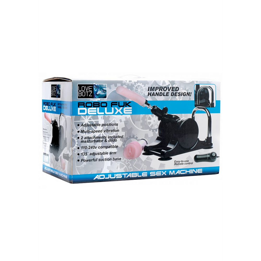 Deze veelzijdige neukmachine is uitgerust met een afstandsbediening met instelbare snelheid, zodat je met een draai aan de knop je ideale stuwkracht kunt kiezen. De hoek en hoogte van de penetratie kunnen snel worden aangepast binnen 135 graden met gemakkelijke draaiknoppen op het frame. Deze krachtige machine wordt geleverd met twee opschroefbare hulpstukken: een flexibele, buigbare SexFlesh-dildo van 8 inch en een pluche, roze, intern getextureerde SexFlesh-poesje. Om realistische, meervoudige stotende actie te ervaren die u zeker zal bevredigen, schroeft u eenvoudig het hulpstuk van uw keuze vast, verhoogt u de snelheid en geniet u van geweldige penetratie of handsfree neukactie! Robo FUK Deluxe is voorgemonteerd, met een plastic omhulsel en aluminium arm, waardoor extra gewicht wordt bespaard en het ideaal is voor op reis. Er zijn geen ingewikkelde instellingen of verwarrende onderdelen om in te stellen. Het is praktisch klaar om direct uit de doos te gaan! Een verbeterd handvatontwerp maakt het steviger, monteerbaar en gebruiksvriendelijker dan de originele versie. Hoewel het misschien niet zo hardcore is als sommige van onze andere machines, maakt het compacte, lichtgewicht en veelzijdige ontwerp het ideaal voor koppels, kleine ruimtes en plezier onderweg! Hij werkt stil en is ideaal voor wie op zoek is naar discretie. De stootarm heeft een gebogen handvat, een perfecte greep voor een partner om hem in je hoek te zetten, of voor solo-gebruik om je tegen te schrappen. Het wordt ook geleverd met 4 zuignapvoeten, waardoor het op zijn plaats op een hard, glad oppervlak kan worden verankerd. Ideaal voor vaginaal of masturberend gebruik. Voor meer hardcore anale penetratie, zie onze andere liefdesmachines.