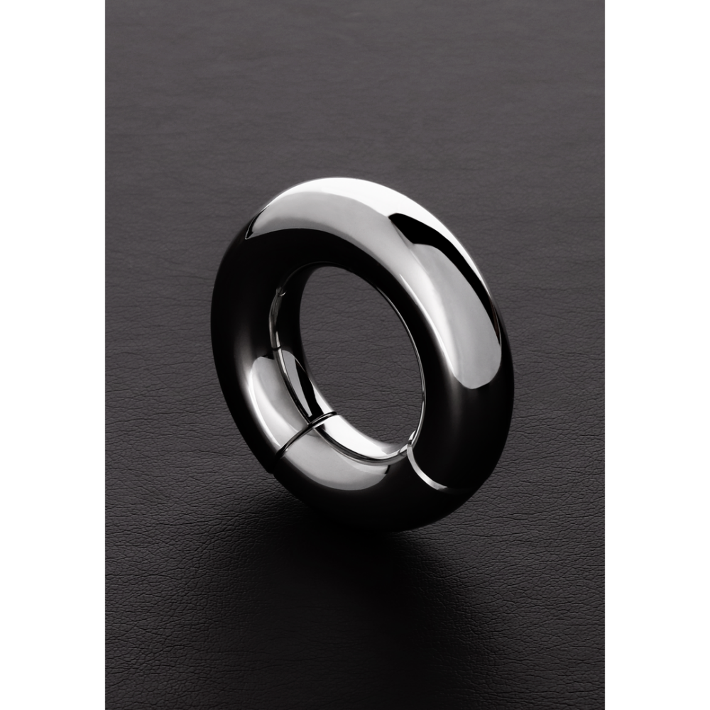 Eenvoudig concept en uitvoering. Krachtige magneten die het speeltje op zijn plaats houdt en een verwijderbare wig. Maak de wig los, schuif je scrotum door de opening en bevestig de wig opnieuw. De sterke magneten houden de ring stevig samen – klaar! Geen gereedschap of inbussleutels nodig. Natuurlijk komt hij net zo snel uit, handig als je haast hebt. De ring is gemaakt van hoogglans gepolijst roestvrij staal. roestvrij staal is vrijwel onverwoestbaar en is gemakkelijk schoon te maken – een product voor de eeuwigheid.