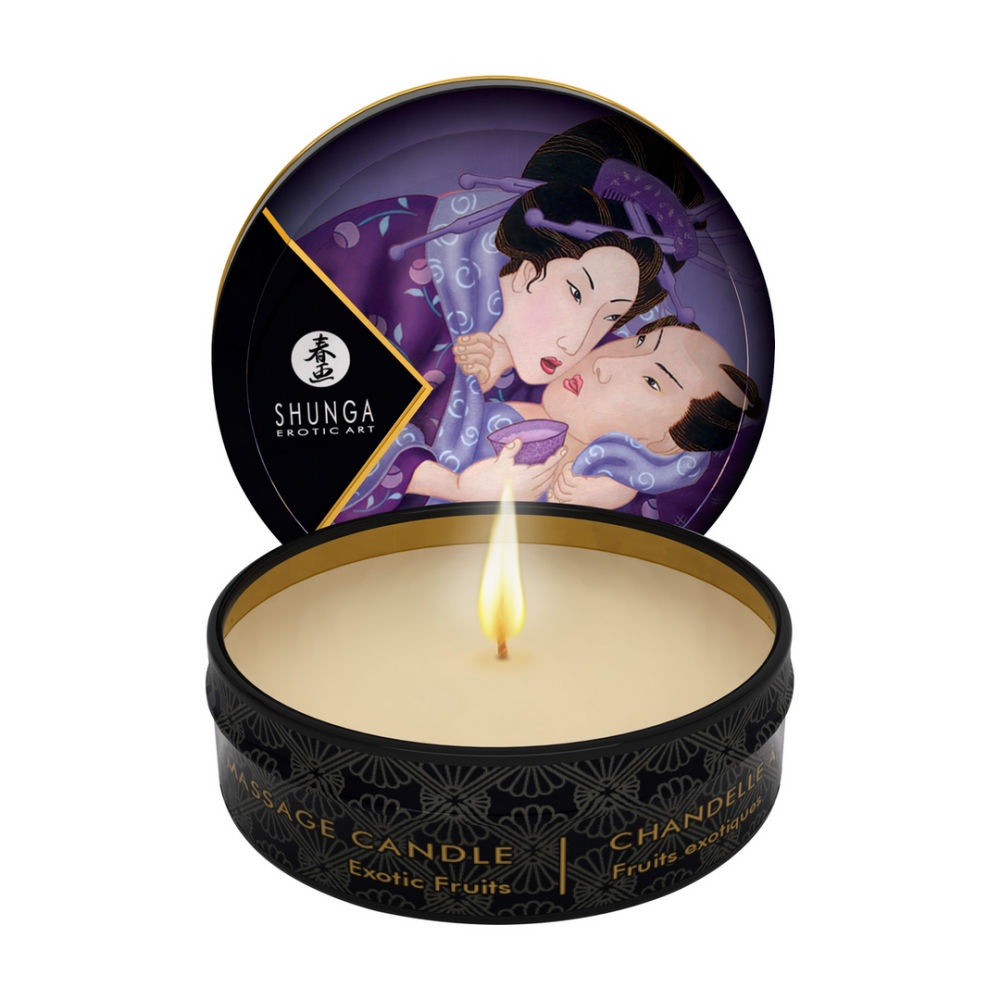 MASSAGE CANDLE Een massage- en ambiancekaars in één! • Gemaakt met natuurlijke oliën • Produceert een lauwe olie bij aanraking • Laat de huid zacht en zijdeachtig aanvoelen • Gemakkelijk te gieten • Verkrijgbaar in 2 maten • Brandt tot 30 uur (170 ml) en 4 uur (30 ml) • Zachte en subtiele geuren Geformuleerd met voedzame soja-, kokos- en amandelolie, om de huid te verzachten zonder de poriën te verstoppen. Vermijd contact met intieme gebieden, aangezien dit product geurstoffen bevat. Niet eetbaar. Alleen voor uitwendig gebruik. OPMERKING: Steek de kaars aan en laat deze ongeveer 20 minuten branden of totdat je genoeg gesmolten olie hebt voor een massage. Doof de vlam voordat je de olie in de palm van je hand giet. Houd de lont op 1/4’’ (6 mm) geknipt. Laat brandende kaarsen nooit onbeheerd achter.
