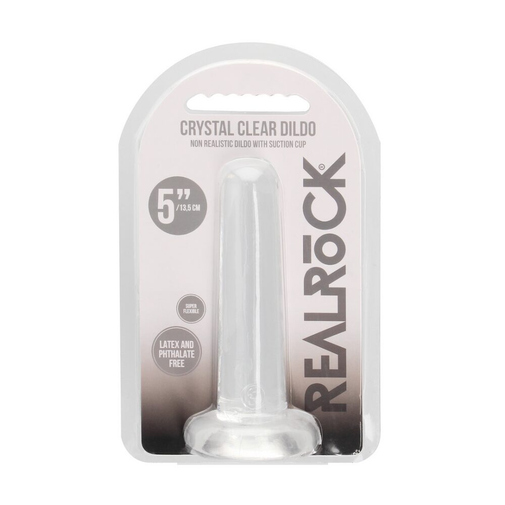 Klaar voor een CRYSTLA CLEAR orgasme? Bereik je kristalheldere climax in stijl met deze mooi gevormde, doorzichtige dildo’s. Deze dildo kijkt dwars door je heen en weet dus precies wat je wilt. Deze dildo is geschikt voor anaal en vaginaal gebruik!Vingerachtige precisiestimulatie, geweldig voor lekkere anale stimulatie, en zeker ook een clitorisvriend? Dat en meer vind je in deze dildo! De basis fungeert als zuignap voor handsfree gebruik, maar geeft ook de optie om hem in een harnas te gebruiken. Alle REALROCK CRYSTAL CLEAR dildo’s zijn ftalaatvrij, latexvrij, lichaamsveilig en niet poreus. Hierdoor zijn ze makkelijk te reinigen en gaan ze nog langer mee.