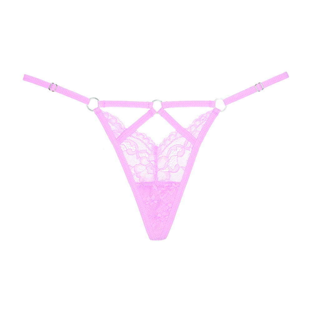Bondage geïnspireerde strappy panty met ondeugende ringdetails en geschulpte kant. Kant aan de voorkant en achterkant met zilveren ringdetails. Verstelbare taillebanden.