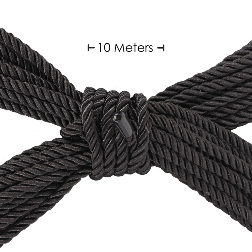 Engage in the dominant (or submissive) game of bondage and dive into a whole new exciting world with this strong Japanese inspired rope. This 10 meter (32.8 feet) long rope is sensuous, silky smooth and easy to clean. It offers endless possibilities, as restraining (or being restrained) will give new depth to your sex life. Cleaning is a breeze with hypoallergenic soap and warm water.