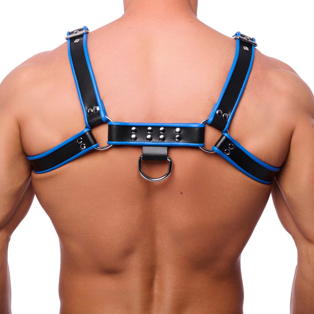 Premium Leren Harnas – L/XL – Zwart/Blauw