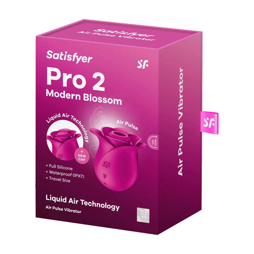 Laat je verlangen bloeien als nooit tevoren en til je solo-tijd naar een hoger niveau met de Satisfyer Pro 2 Modern Blossom, een drukgolf vibrator die moderne esthetiek naadloos combineert met de kracht van Satisfyer’s technologieën. Het slanke en innovatieve ontwerp is geïnspireerd op de schoonheid van een bloeiende roos, waardoor het niet alleen een liefdespeeltje is, maar ook een stuk functionele kunst. De Satisfyer Pro 2 Modern Blossom beschikt over de geliefde Satisfyer Air Pulse Technology en de nieuwe en buitengewone Satisfyer Liquid Air Technology. Kies de Air Pulse-kap voor aanraking-vrije clitorale genot of de Liquid Air-kap met zijn bloemblad-dunne membraan, dat de sensuele golf van pulserend water nabootst. Of je nu verlangt naar een zachte aanraking of diepe, verkwikkende pulsen – kies je favoriete instelling uit 11 drukgolf intensiteiten. De voordelen van de Satisfyer Pro 2 Modern Blossom stoppen niet bij zijn chique uiterlijk – gemaakt van zacht silicone, heeft het geen doornen maar voelt het superzacht aan op je huid. Het is ook volledig waterdicht (IPX7), wat je uitnodigt om jezelf onder te dompelen in een wereld van rustige ontspanning. Stel je voor dat je in een rustgevende bad zit of de kalmerende stroom van een douche omarmt terwijl het elegante, door de natuur geïnspireerde ontwerp van de Pro 2 Modern Blossom je clitoris stimuleert en je zintuigen verwent. Verwen jezelf met de Satisfyer Pro 2 Modern Blossom en ontdek de schoonheid van Satisfyer’s innovatie – deze bloem wacht erop om door jou geplukt te worden!
