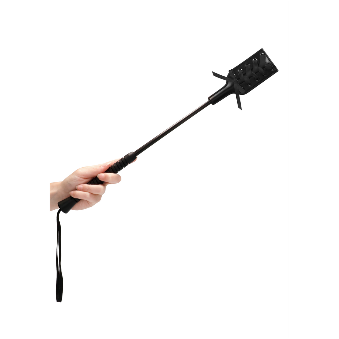 This short handled rectangular shaped crop with black lace is the perfect way to discipline your partner.
