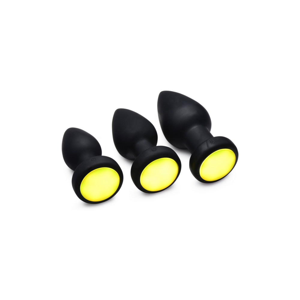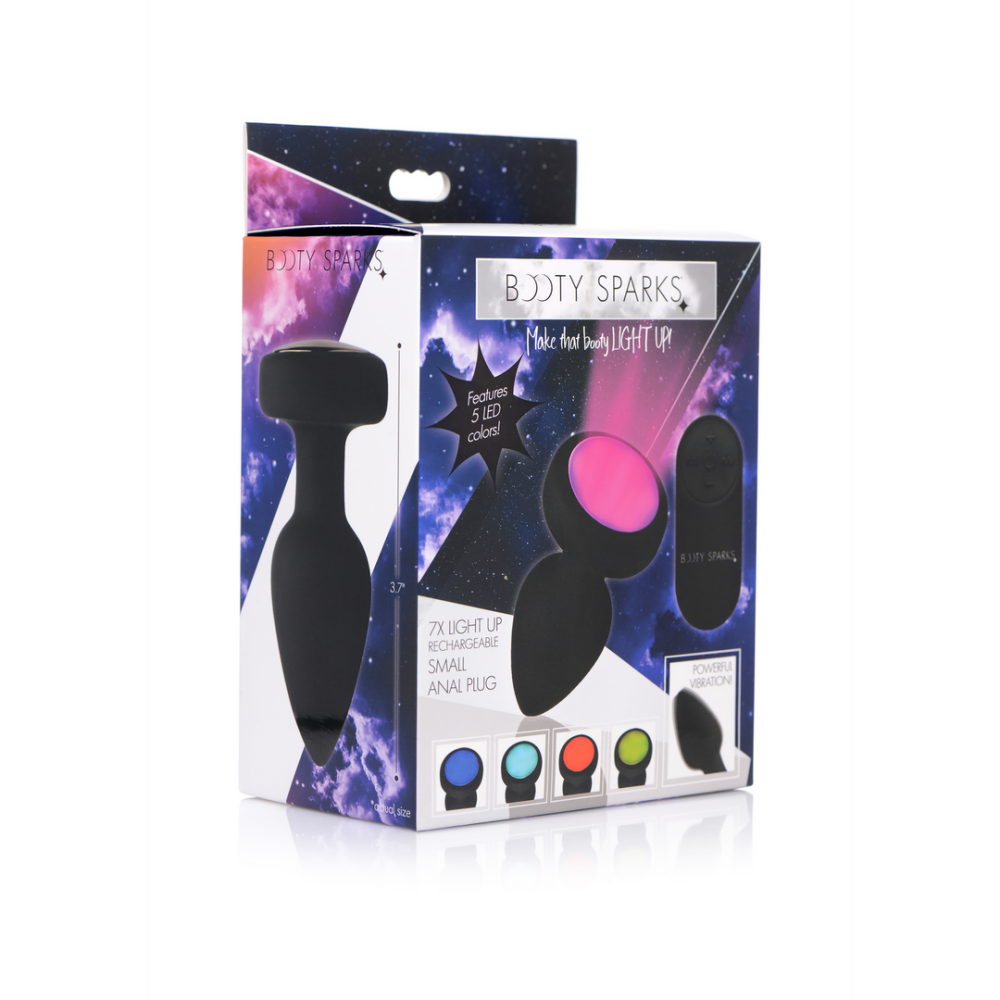 Zet een sexy achterdeur lichtshow op! Deze ruime plug nestelt zich tussen je wangen en zoemt je kont met 7 krachtige vibraties. Ondertussen flitsen 5 verschillende LED-lichtkleuren uit je anus in een psychedelische volgorde, met 3 stroboscoopsnelheden om uit te kiezen. Gebruik de afstandsbediening om gemakkelijk door de instellingen voor beide functies te bladeren, of geef de stroom over aan uw partner. De taps toelopende punt en zijdezachte siliconen zorgen voor een comfortabele inbreng. Dit is een geweldige plug voor een kinky raver of iedereen die in het donker voorover wil buigen en zijn partner wil verrassen. Bewaar het hoogwaardige, ftalaatvrije materiaal door het gebruik met siliconensmeermiddelen te vermijden en te reinigen met milde zeep of toycleaner.