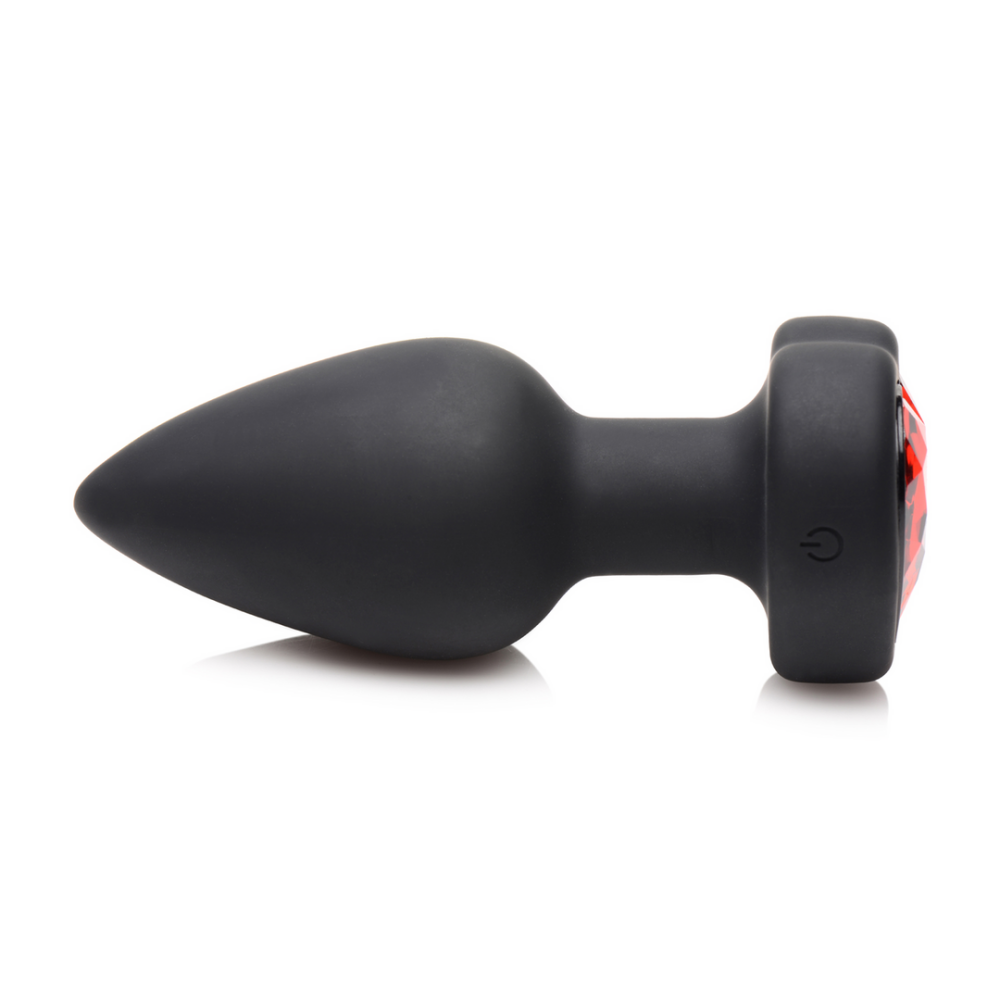 Versier je achterste met deze Red Heart Gem Anal Plug! Laat je mooie achterdeur zien en voel de intense genot van 4 snelheden en 7 patronen van rumblerende vibratie die je P-spot wakker maken en tintelingen naar je A-spot sturen! Die moeilijk bereikbare genotsplekken worden geprikkeld en verleid met een gemakkelijk in te brengen plug de taps toelopende punt helpt je om je kleine bruine ster te openen en, met behulp van wat op water gebaseerde glijmiddel, kun je deze premium siliconen plug soepel naar binnen glijden! De pluche, superzachte textuur van de plug is sensueel om aan te raken. Gemaakt van kwaliteitsvolle, premium siliconen, is het ftalaatvrij en veilig voor het lichaam. Ontworpen om spatwaterdicht te zijn, kun je dit gemakkelijk na gebruik schoonmaken met warm water en milde zeep, daarna sprayen met een speelgoedreiniger en droogvegen. Opladen kan met de meegeleverde USB-kabel. Gebruik de op batterijen werkende afstandsbediening om de vibratie-instellingen te veranderen terwijl het nog binnenin is! Na het koppelen van de plug met de afstandsbediening, smeer je de plug en je anus in voordat je het erin schuift. Zodra je comfortabel bent gepositioneerd, begin je te spelen met verschillende instellingen totdat je je favoriet vindt. Geef de afstandsbediening aan je partner en laat hen met je spelen terwijl jullie elkaar berijden, of word ondeugend en geef een show voor hen! Combineer dit met andere speeltjes en draag het rond als een leuk speeltje om je leven op te fleuren! Afmetingen: Totale lengte: 9,4 cm, Inbrengbare lengte: 7,4 cm, Breedste inbrengbare diameter: 3,6 cm Materialen: Siliconen, ABS-kunststof Kleur: Rood, zwart Opmerking: Afstandsbediening tot 10 meter, vereist 1 x CR2032-batterij (inbegrepen). Alleen gebruiken met op water gebaseerde glijmiddelen. Waterdichtheidsclassificatie van IPX5. Belangrijkste kenmerken: Krachtige Vibratie: Geniet van de krachtige rumblerende vibraties in je achterste met deze vibrerende butt plug! Met 4 snelheden en 7 patronen van vibratie om uit te kiezen, vind je zeker de OMG-instelling van je dromen! Oplaadbaar: Nooit meer op zoek naar batterijen als je gewoon kunt opladen! Deze plug is volledig oplaadbaar via de meegeleverde USB-kabel. Taps toelopende Punt en Gejuweld Basis: De taps toelopende punt maakt het gemakkelijk om in te brengen voor zowel ervaren als nieuwe anale liefhebbers. Voeg een beetje fonkelende plezier toe met de rode, hartvormige juweelbasis! Premium Spatwaterdichte Siliconen: Met premium siliconen heb je kwaliteitsmaterialen die superzacht, pluche en ftalaatvrij zijn, waardoor ze veilig voor het lichaam zijn en ideaal voor anaal spel. Met spatwaterdichte bescherming kan dit speeltje een beetje water aan, waardoor het gemakkelijk schoon te maken en te dragen is.