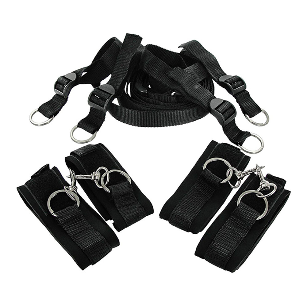 De Frisky Bedroom Restraint Kit is draagbaar en gemakkelijk te gebruiken met H-vormige banden die onder elk bed passen en om de enkels en polsen kunnen worden bevestigd om beweging te beperken. De stevige Neopreen boeien zijn zacht en comfortabel, maar sluiten veilig met zware Velcro. Draaiende clips bevestigen de boeien aan de banden onder het matras. Geniet ervan om je partner in compromitterende posities te plaatsen terwijl je hen teistert en verwent totdat je besluit dat ze worden vrijgelaten! Afmetingen: Vier restrain banden en een verbindingsband passen tot ongeveer 48 inch in lengte, boeien verstelbaar tot ongeveer 16 inch rond. Materiaal: Neopreen, Velcro, nylon en metaal. Kleur: Zwart. Opmerking: Inclusief vier boeien en H-vormige restrain band. Verstelbaar om op elk formaat matras te passen. Draagbaarheid stelt je in staat om elk bed om te toveren tot een sexy restrain Verstelbaar om op elk formaat matras te passen Kan worden geregeld om te werken met meerdere restrain posities: op de rug, op de buik, hog-tie, enz.