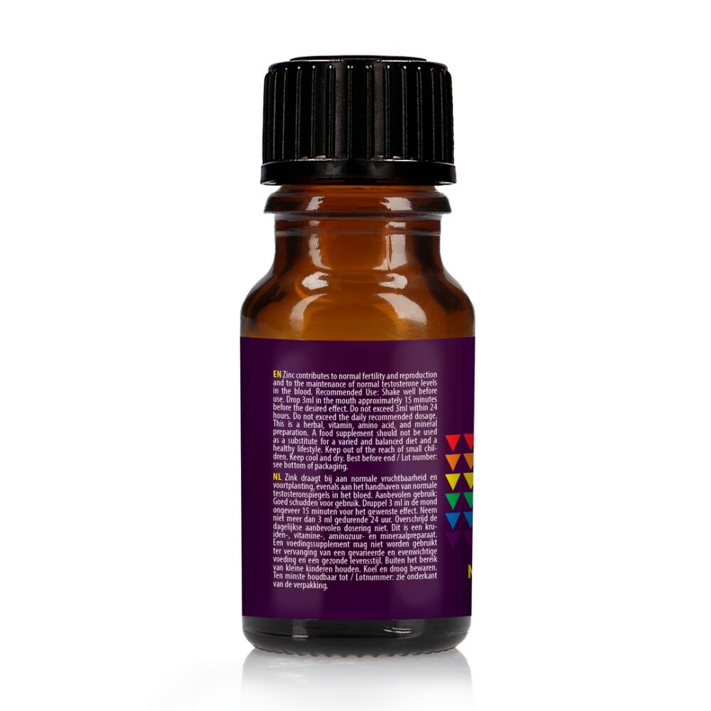 Zink draagt bij aan normale vruchtbaarheid en voortplanting, evenals aan het handhaven van normale testosteronspiegels in het bloed. Aanbevolen gebruik: Goed schudden voor gebruik. Druppel 3 ml in de mond ongeveer 15 minuten voor het gewenste effect. Neem niet meer dan 3 ml gedurende 24 uur. Overschrijd de dagelijkse aanbevolen dosering niet. Dit is een kruiden-, vitamine-, aminozuur- en mineraalpreparaat. Een voedingssupplement mag niet worden gebruikt ter vervanging van een gevarieerde en evenwichtige voeding en een gezonde levensstijl. Buiten het bereik van kleine kinderen houden. Koel en droog bewaren. Ten minste houdbaar tot / Lotnummer: zie onderkant van de verpakking.