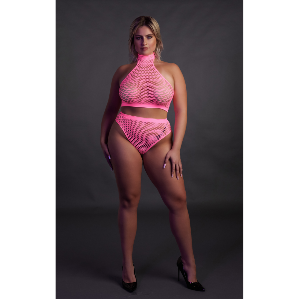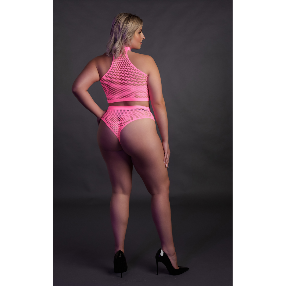 Turtleneck en Hoge Taille Slip – Plus Size – Neon Roze