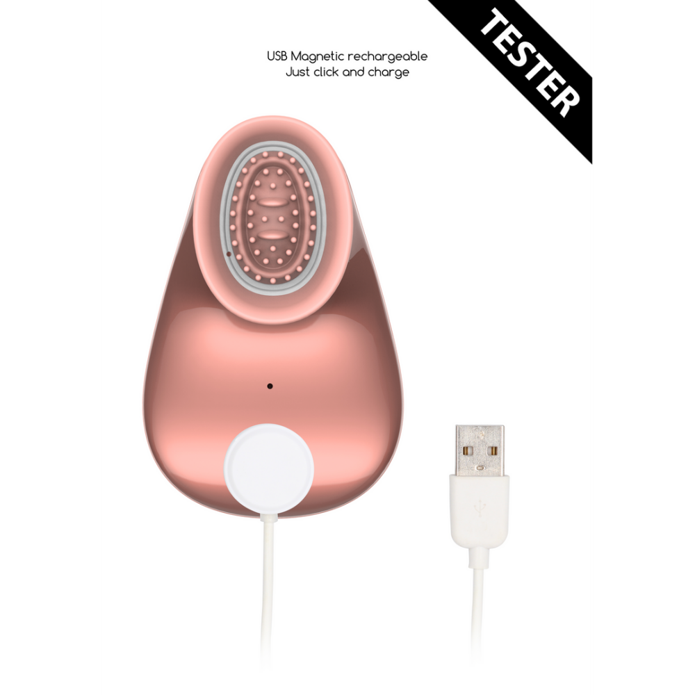 Dit handsfree, prachtig ontworpen, kleine en innovatieve speeltje helpt je lichaam voor te bereiden op nieuwe en plezierige seksuele ervaringen! Gebruikers zullen niet alleen genieten van een verhoogde bloedstroom naar de clitoris, maar dit slanke speeltje zal ook vaginale lubricatie bevorderen, waardoor het je beste vriend wordt voor voorspel en meer. De lichaamsveilige cup, met 2 tongen en verschillende verleidelijke mini-haren, past perfect over de clitoris en creëert een zachte zuiging die de bloedstroom bevordert en de gevoeligheid in het clitorale gebied verhoogt voor de meest intense orgasmes die je ooit hebt gehad. De 2 super krachtige motoren binnenin zorgen voor verbluffende vibraties en zachte zuiging met een verbazingwekkende 8000 rpm. Plezierzoekers kunnen schakelen tussen 4 zuigmodi en 10 vibratiemodi, wat dit speeltje de ultieme variëteit en veelzijdigheid geeft. Om te reinigen, was je eenvoudig de zachte hoes met warm, zeepachtig water. Het is CE-gecertificeerd, gemaakt van 100% medische siliconen, waterdicht (IP67) en heeft een extreem stille motor van onder de 65dB. Het bevat een USB-magnetisch oplaadbare batterij die, wanneer volledig opgeladen, 60 minuten gepassioneerde speeltijd biedt. Klik gewoon en laad op!