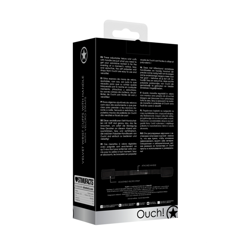 These adjustable Velcro handcuffs with handle are just what you need to get your submissive locked in for the evening at a moment’s notice. Sexy and seductive, the soft polyester wrist straps from Ouch! are easy to use and versatile! No frills, no fuss these handcuffs are the back to basics accessory you need in your gear bag. The added handle makes it easy to dominate your Sub from behind or lift their arms as you please.