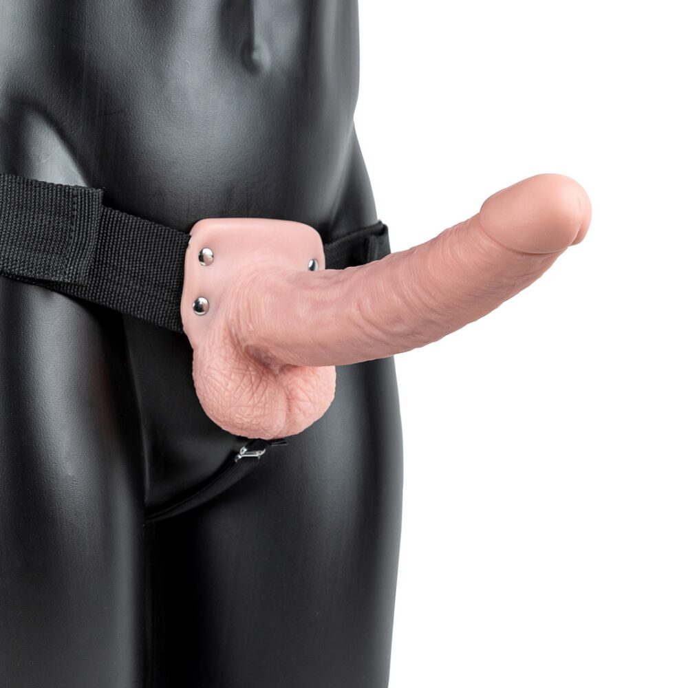 Wees de RealRock-ster die je altijd al wilde zijn met deze vibrerende RealRock Hollow Strap-On met ballen. Dit product geeft je extra omvang en lengte, helpt je het langer vol te houden, vermindert vroegtijdige ejaculatie, helpt je nog beter te presteren zelfs als je erectieproblemen hebt zodat je je partner nooit meer teleurstelt. Deze Strap – On is verstelbaar waardoor het past bij elk lichaamstype. De band is comfortabel en beweegt niet als jij je beste moves laat zien. Dit model heeft een multi-speed vibrator die jou op alle juiste plekken plezier geeft. De afstandsbediening kan vastgesklipt worden aan de band, zodat jij je geen zorgen hoeft te maken waar je hem laat (hands-free). De dildo van deze Strap-On voelt en ziet er realistisch uit, wat resulteert in ervaring die niet van echt te onderscheiden is. Dus, riemen vast en wees klaar om los te gaan!