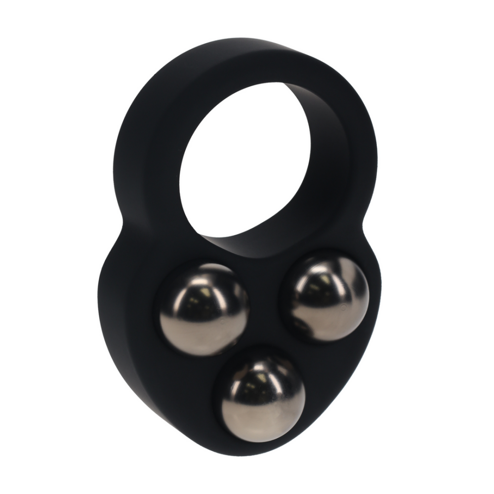 Vloeibare Siliconen Drievoudig Gewogen Bal Cockring – Zwart